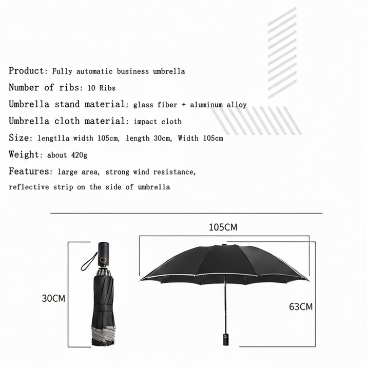 Automatischer Rückwärts-Taschenschirm mit Reflektorstreifen